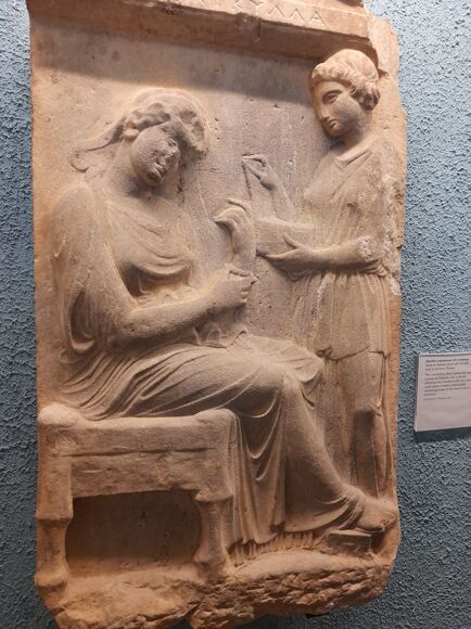 Subsequently, I saw the marble tombstone of Timarete, a notable part of our visit, which represents a woman who passed away, leaving her infant to the care of a nurse. This was a very heart-warming artefact, linking closely to our study of the Stele of Ampharete, a similar artefact, displaying a woman embracing her grandchild in her arms. Seeing the Stele of Timarete, gave me an insight into the maternal and nurturing nature of the women in Ancient Greece and evidently conveying their true love and devotion to their children.